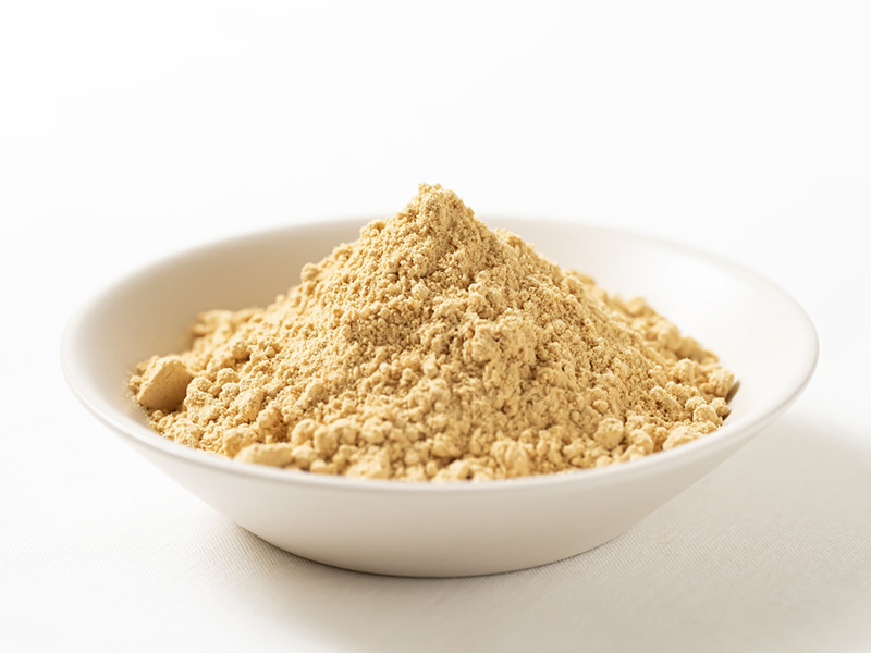 国産大豆をじっくじっくりと芯まで煎り上げ、丹念に細かく挽き、なめらかな触感に仕上げました。まろやかな口溶けと抜群の香り。飲み物に入れたり、お餅にもよくからみます。