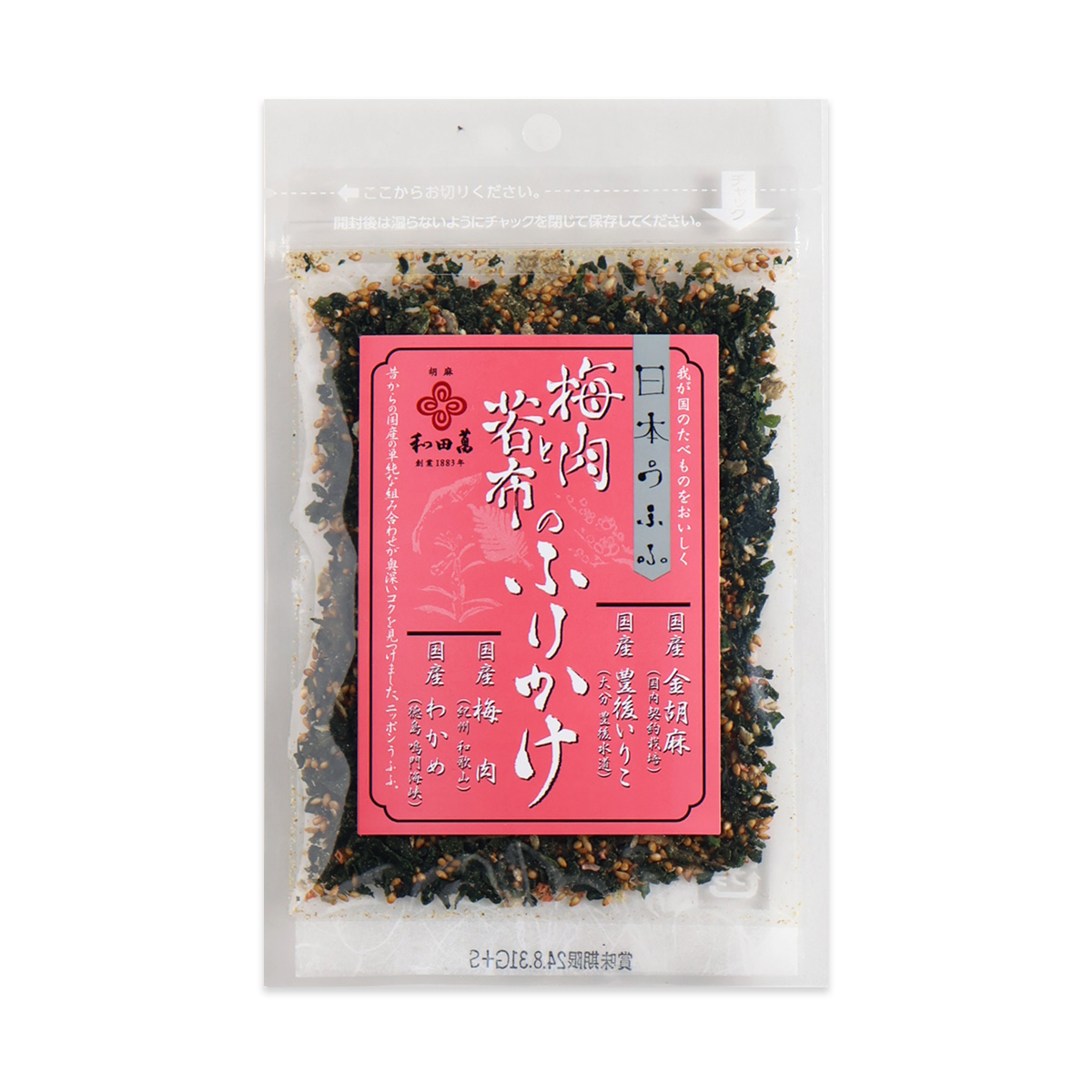 和歌山の梅と鳴門のわかめ、豊後水道のいりこなど、こだわりの材料を使用したふりかけです。