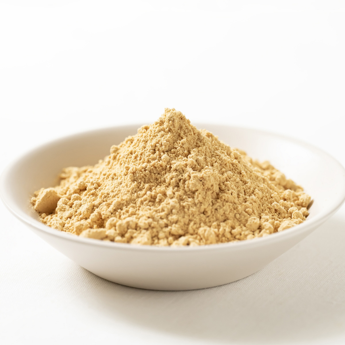国産大豆をじっくじっくりと芯まで煎り上げ、丹念に細かく挽き、なめらかな触感に仕上げました。まろやかな口溶けと抜群の香り。飲み物に入れたり、お餅にもよくからみます。