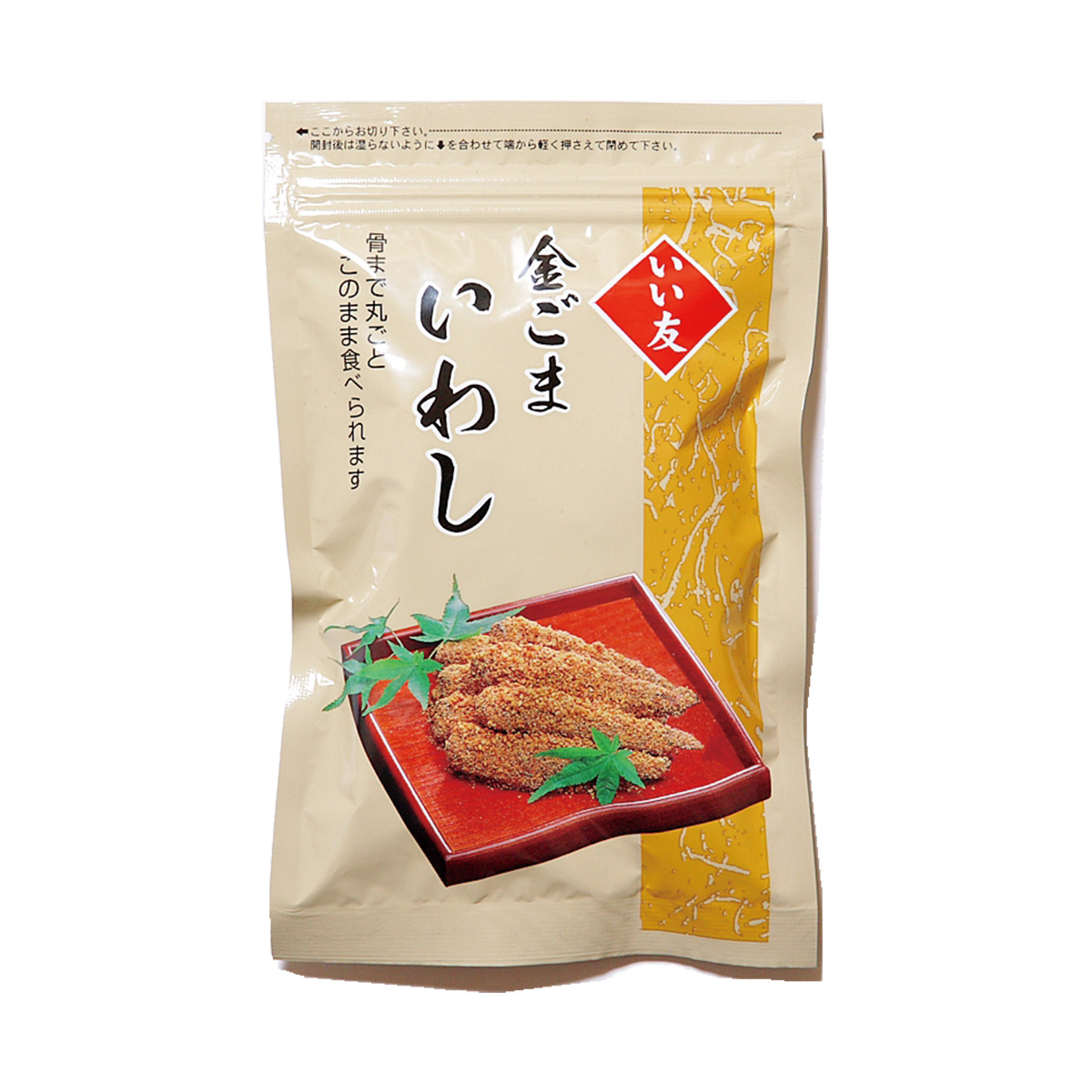 高圧釜で骨まで柔らかく炊いた上質の「いわし」と、たっぷりの「金すりごま」で美味しく仕上げました。