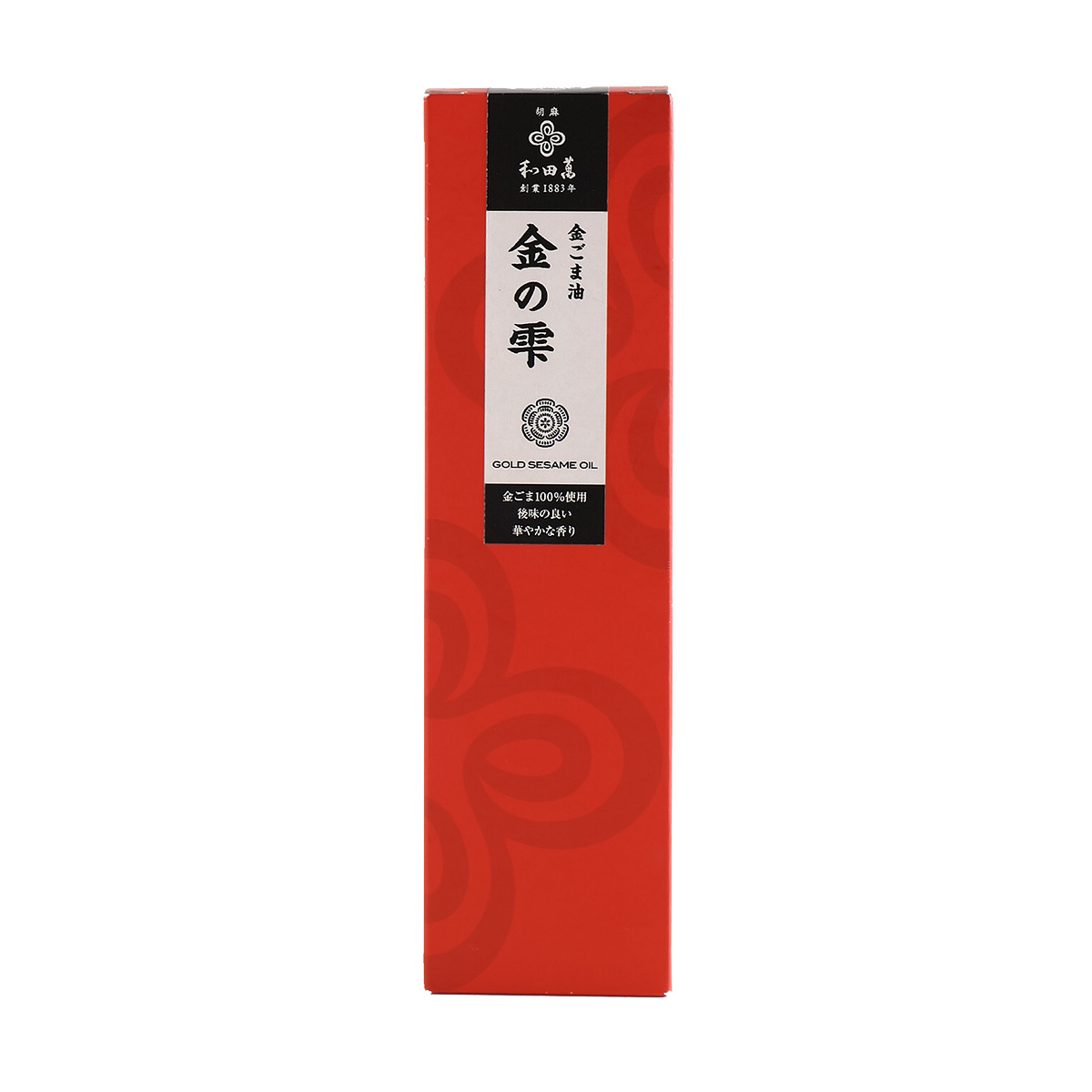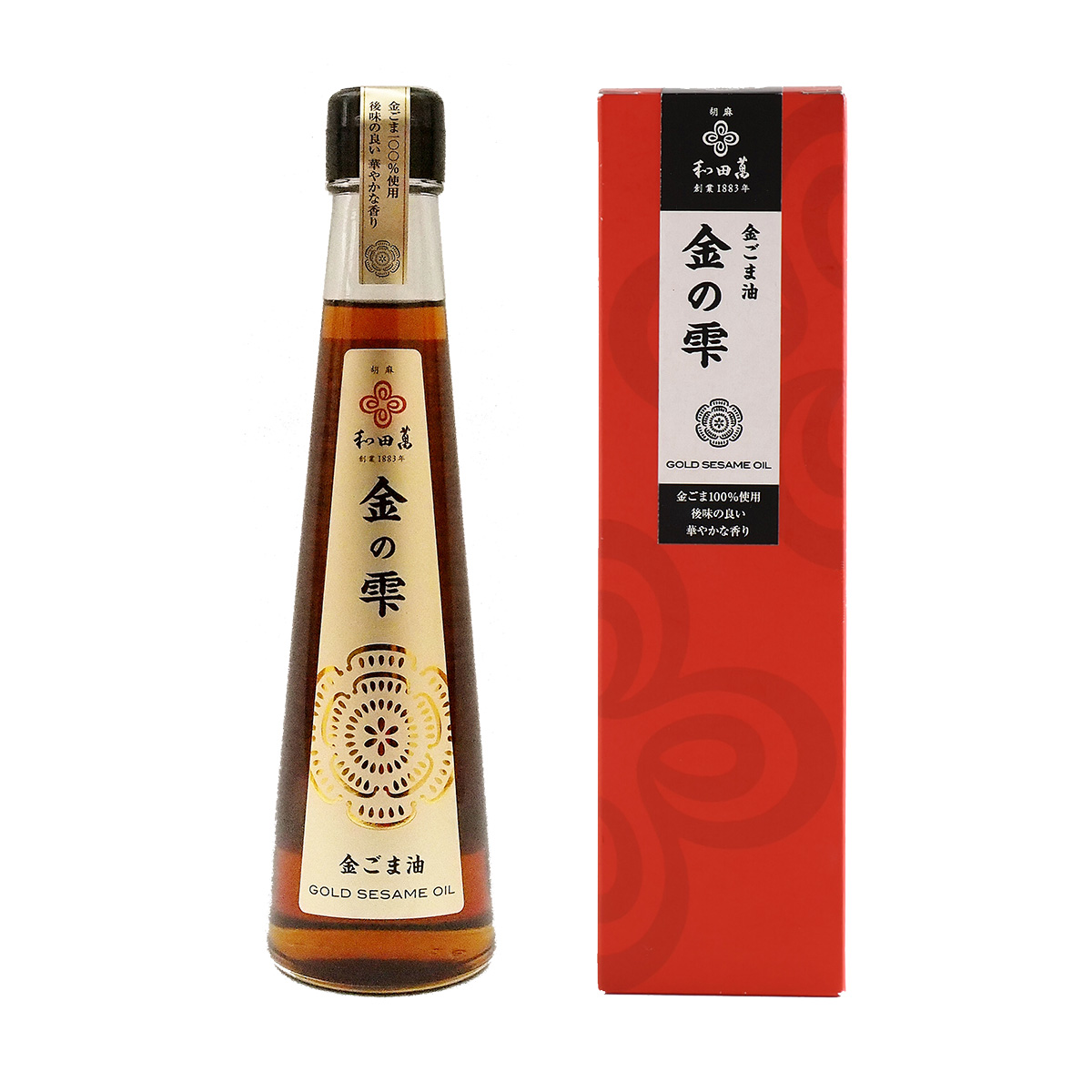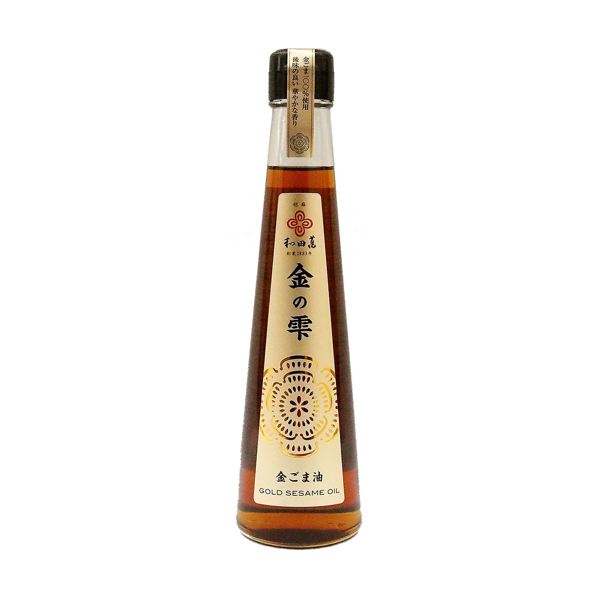 ごまの王様「金ごま」を丁寧に搾った香り高いごま油です。華やかな香りと濃厚なうまみ、豊かでコクのある風味が特徴です。 普段のお料理に香り付けとしてご利用いただけると、お料理の風味が何倍にも引き立ちます。 サラダやアイスクリームにかけてもおいしいです。
