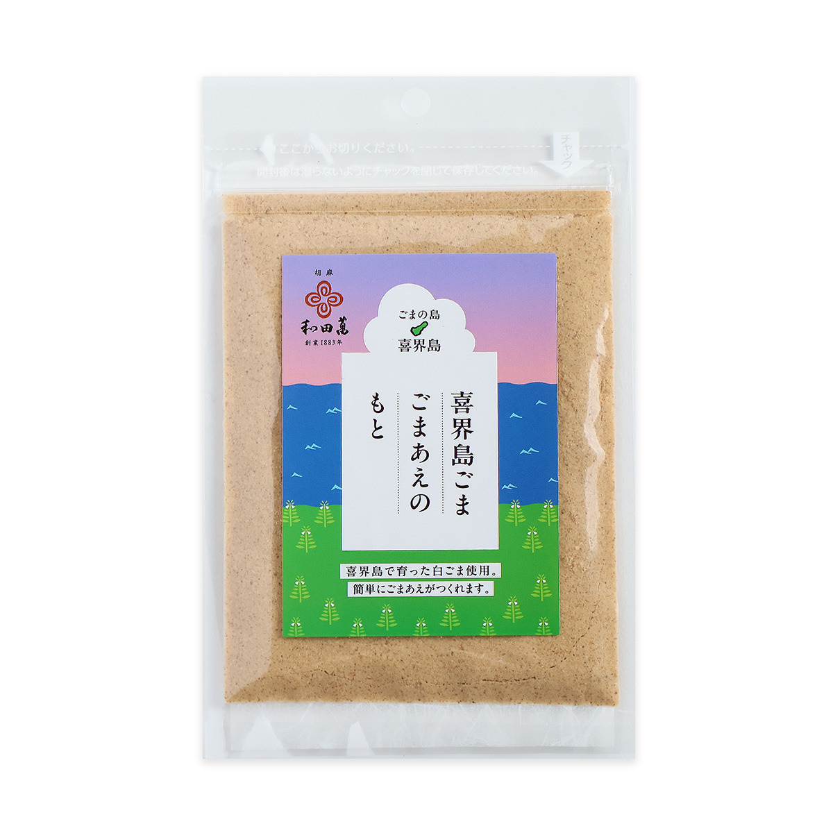 島の人々が愛情をこめて育てた"島ごま”と呼ばれるこのごまを和田萬の技術で、ふっくらと香り高く焙煎し、醤油やかつおと合わせて、ごまあえのもとをつくりました。青菜をゆでて和えるだけで簡単においしいごまあえができあがります。